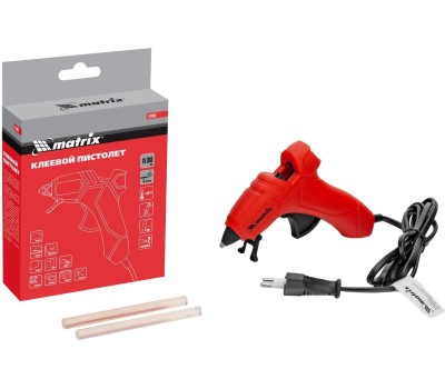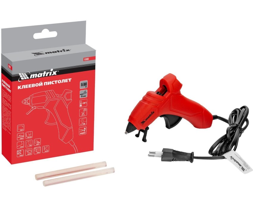 Клеевой пистолет Matrix 93003, 7 мм, используется для бытовых и полупрофессиональных нужд: мелкого ремонта, упаковки товаров, фиксации деталей, создания игрушек и объемных украшений, декорирования и т.д. Инструмент пригодится отделочникам, моделистам и тем, кто занимается хенд-мейдом. Он выдает 8 г клея в минуту.ПреимуществаНосик оборудован специальной накладкой из каучука, которая защищает оператора от ожогов.Противокапельная система предотвращает подтекание клея, это позволяет снизить его расход и содержать рабочее место в порядке.Пистолет можно ставить на подставку для удобства работы.Пистолет полностью готов к работе - в комплекте идут 2 клеевых стержня.