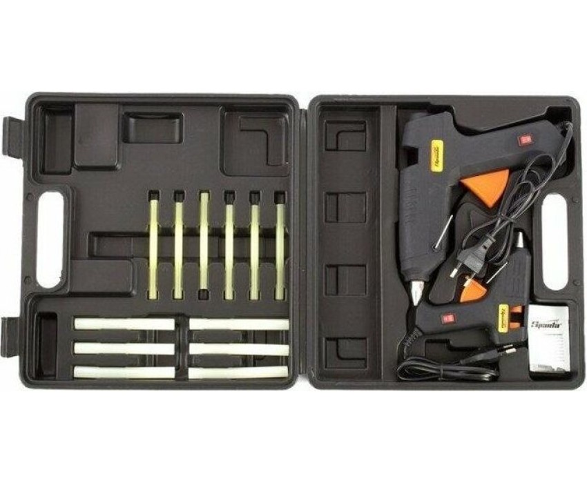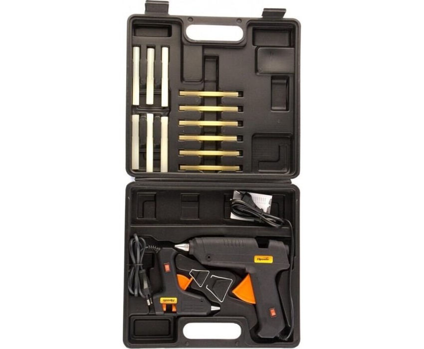 Клеевой пистолет SPARTA Набор клеевых пистолетов в кейсе, 7/11 мм, 20/100 Вт, 3/8 г/мин, выключатель 93038