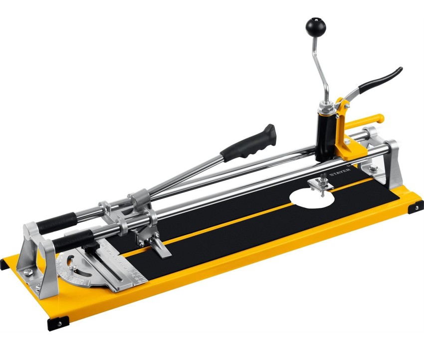 Плиткорез STAYER - правильный выбор! Оснащен сменным твердосплавным режущим элементом, . Металлические направляющие обеспечивают точный и плавный разрез керамической плитки. Усиленная платформа и опоры позволяют проводить работы с керамической плиткой повышенной толщины и увеличивают срок службы плиткореза. Преимущества Плиткорез оснащен сменным твердосплавным режущим элементом, . Металлические направляющие обеспечивают точный и плавный разрез керамической плитки. Усиленная платформа и опоры позволяют проводить работы с керамической плиткой повышенной толщины и увеличивают срок службы плиткореза. Размеры и толщина керамической плитки указаны на упаковке. Использование Предназначен для разрезания и разламывания всех видов настенной и напольной керамической плитки толщиной 4-12 мм под прямым или произвольным углом, а также вырезания отверстий диметром 40 мм