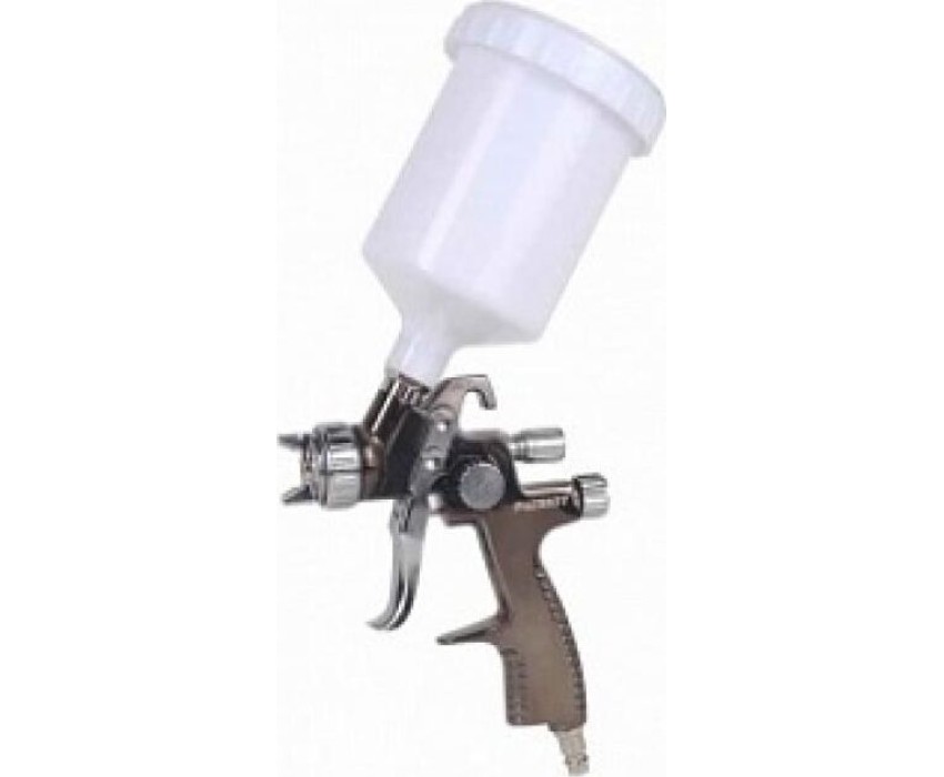 Ширина распыления, мм 220. Диаметр сопла, мм 1,5. Тип соединения быстросъем. Упаковка коробка. Присоединительный штуцер, дюйм 1/4. Ширина факела, мм 120-220. Рабочее давление, бар 3,0-4,0. Расположение бачка верхнее. Емкость бачка, мл 600. Расход воздуха, л/мин 200. Вес, кг 0.9.