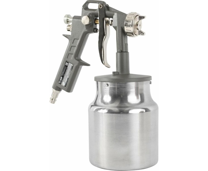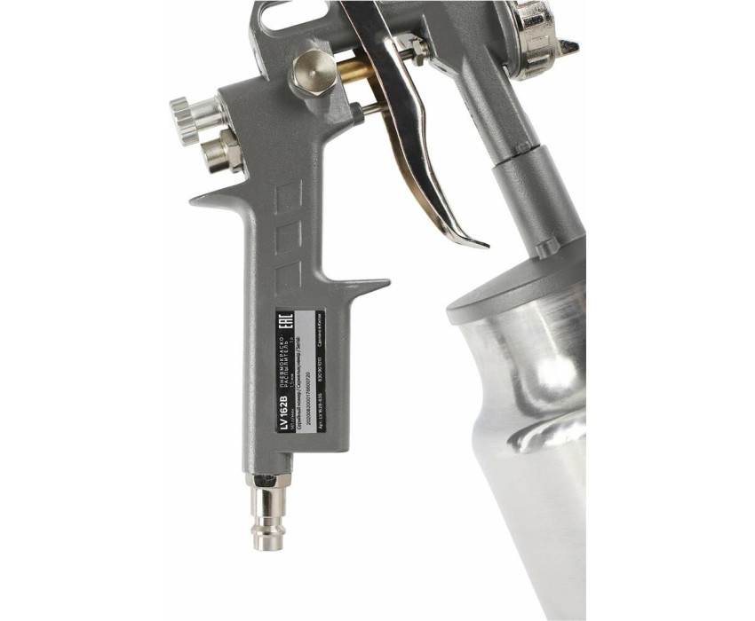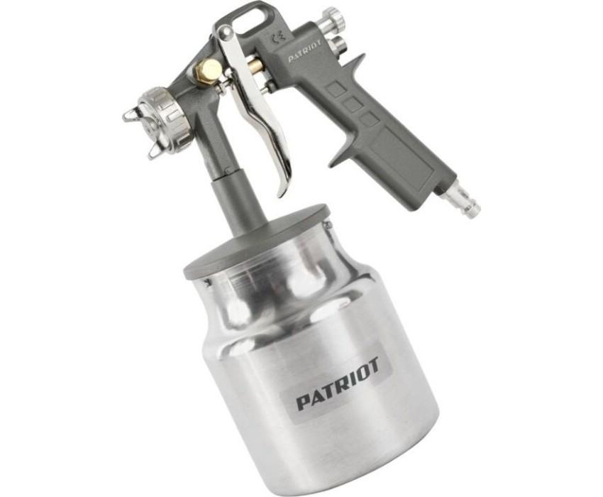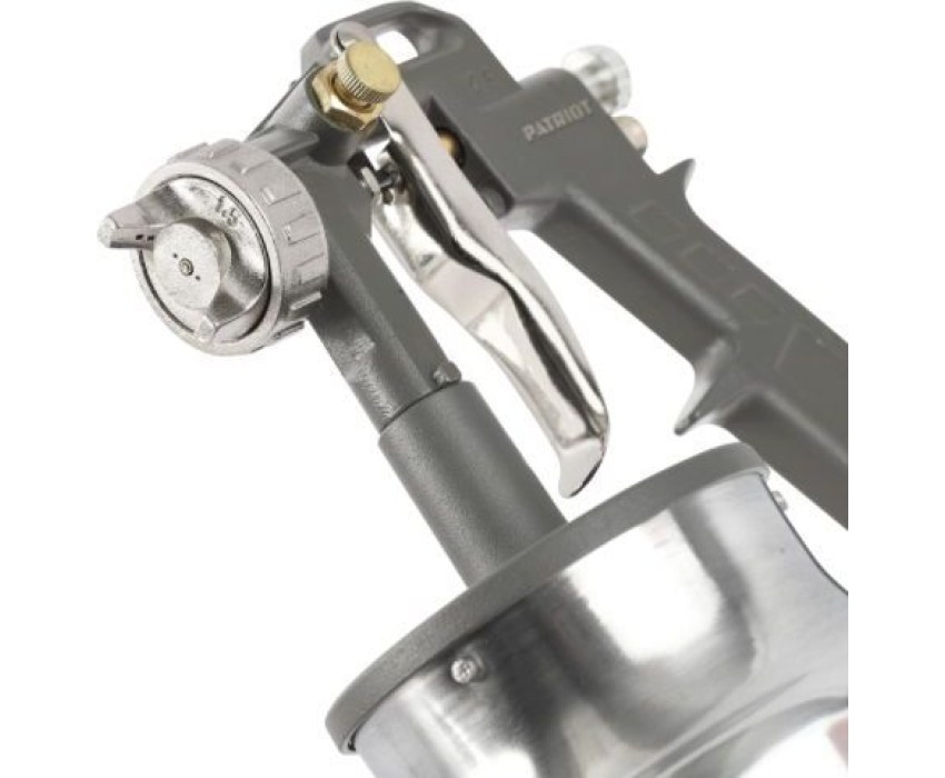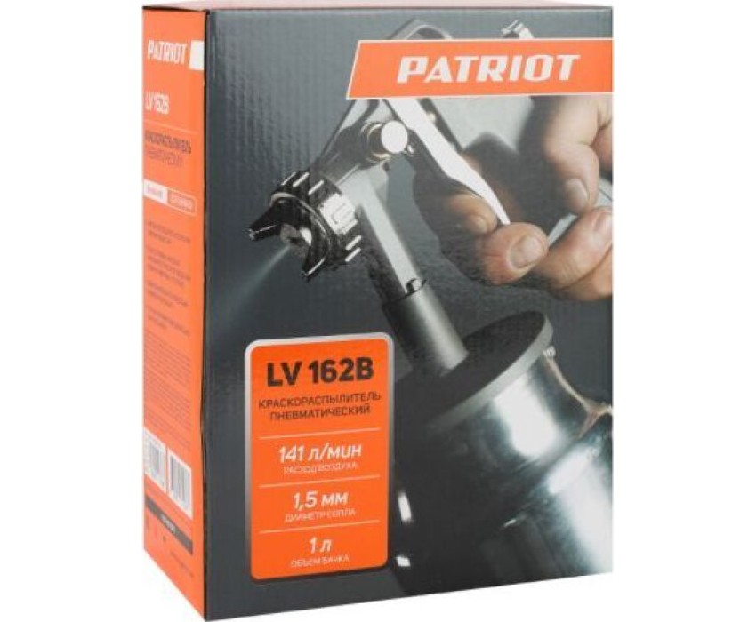 Пневмокраскораспылитель PATRIOT LV 162В, Расход воздуха: 400 л/мин; Объем бачка для краски: 1 л. нижний; Давление: 3.0-4.0 бар; Диаметр сопла: 1,5 мм; Ширина факела: 120-220 мм; Соединение: быстросъем.