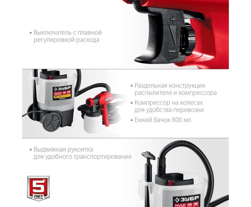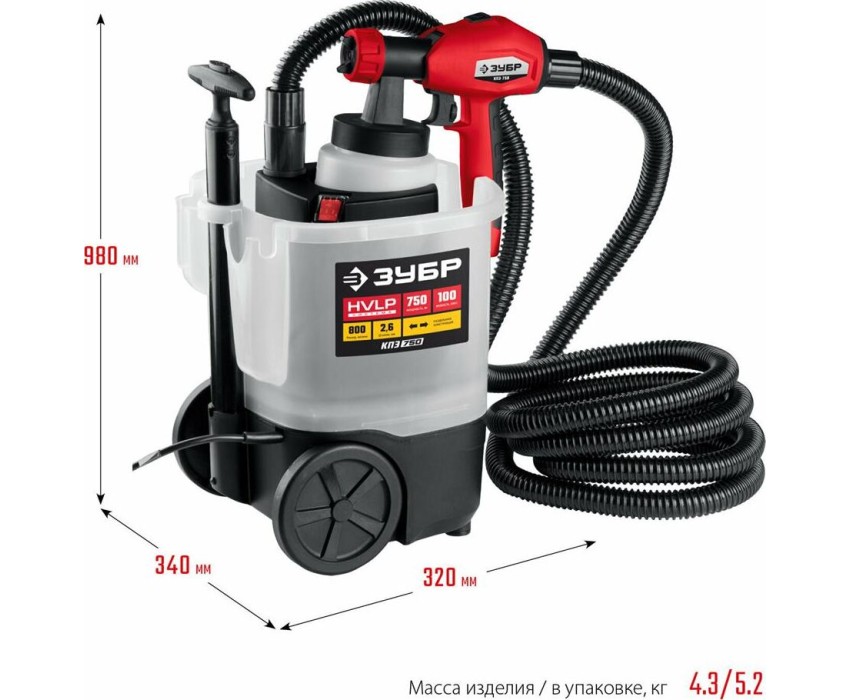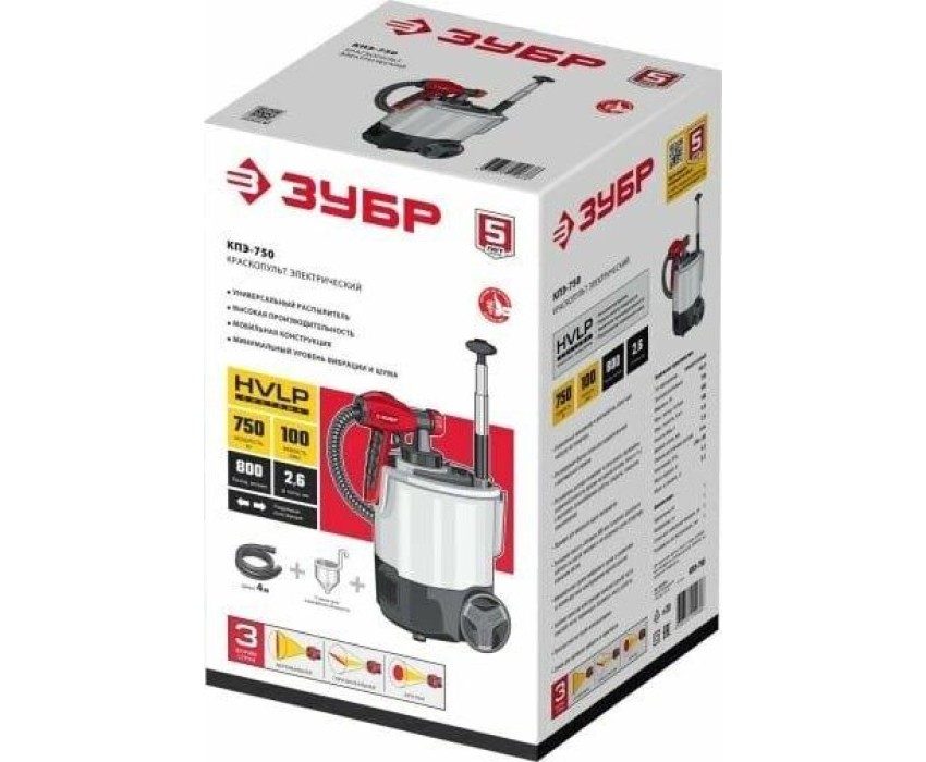 Краскопульт ЗУБР КПЭ-750 Краскопульт электрический, компрессорный, 750 Вт