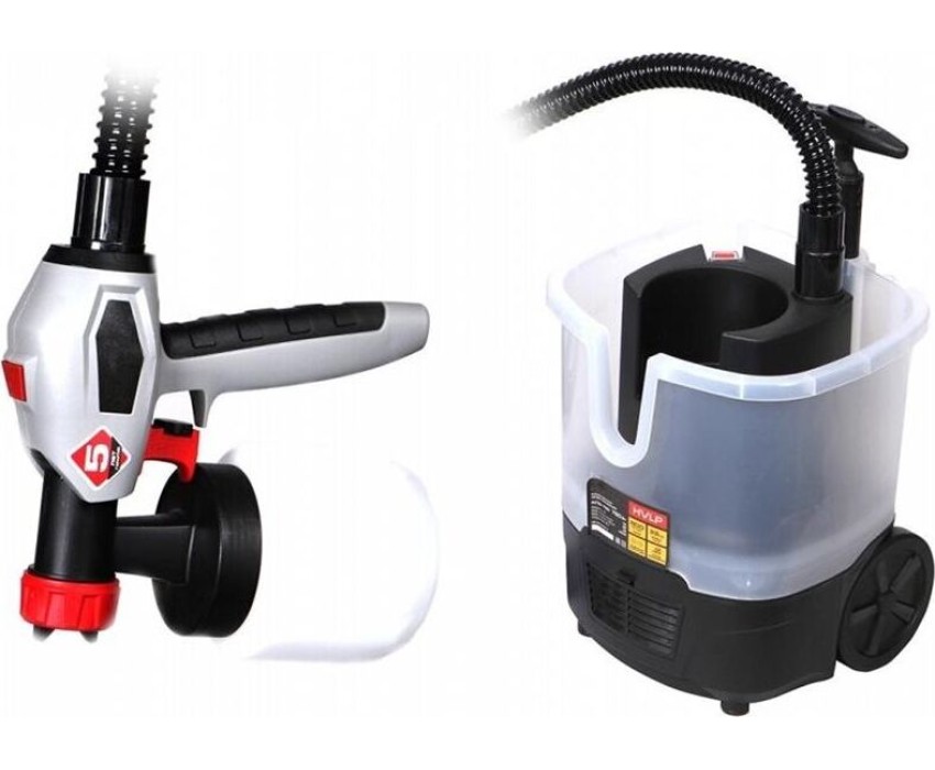 краски: пластичная, масляная, эмалевая; опционально: сопло КПЭ-С1 для латексных красок, красок на водной основе, лака, олифы, защитных составов для дерева, протрав и морилок, регулировка расхода; колесная конструкция компрессорной части; распыляемый материал