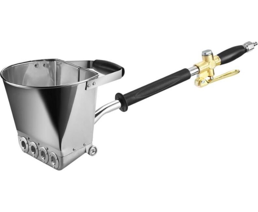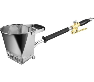 Хоппер-ковш штукатурный DEKO HG-01 (стеновой) предназначен для для машинной штукатурки стен. Инструмент состоит из контейнера, куда заливается раствор, а также трубки-держателя с обратным клапаном для сжатого воздуха и разъемом. Контейнер выполнен из нержавеющей стали, благодаря чему устойчив к коррозии и рассчитан на длительный срок службы. Рекомендуемое расстояние между ковшом и стеной при нанесении раствора может составлять от 5 до 10 см. Технические характеристики: Объем ковша: 3,5 л Тип соединителя: рапид (EURO) Расход воздуха: 400 л/мин Диаметр рукава: 16-18 мм Рабочее давление: 6 атм