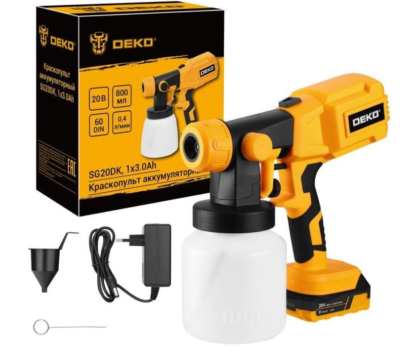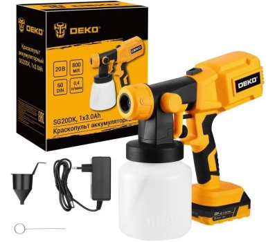 Краскопульт аккумуляторный DEKO SG20DK, 20В, 800 мл, 1x3.0Ач 083-1133