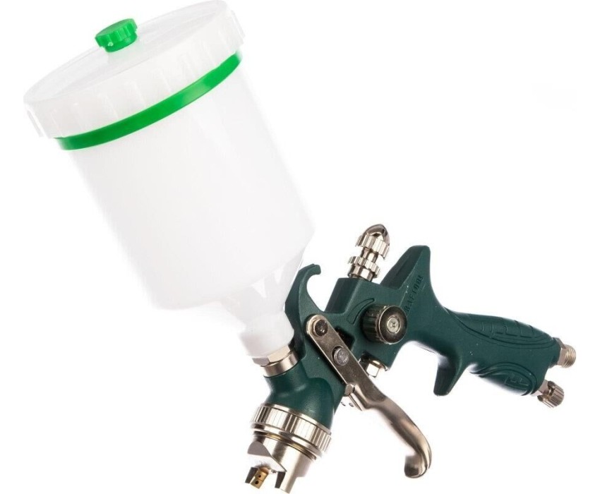 Цвет: зеленый. Комплектация: Краскопульт, бачок, переходник, пластиковый фильтр, инструмент для обслуживания краскопульта.. Вес нетто: 0.8. Расход воздуха: 220. Сопло: 1.4. Объем бака: 0.6. Материал бака: пластик. Посадочный размер (для коннектора): 1/4. Расположение бака: верхнее. Технология распыления: LVLP. Коннектор: быстросъем. Габариты упаковки (ед) ДхШхВ: 0.225x0.125x0.13. Вес упаковки (ед): 0.6. Страна производства: Тайвань. Гарантия: 12 мес.. Давление: 3 - 4 Бар. Сопло: 1.4 мм. Давление: 3 - 4 Бар. Объем бака: 0.6 л. Вес нетто: 0.8 кг. Расход воздуха: 220 л/мин