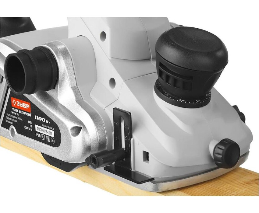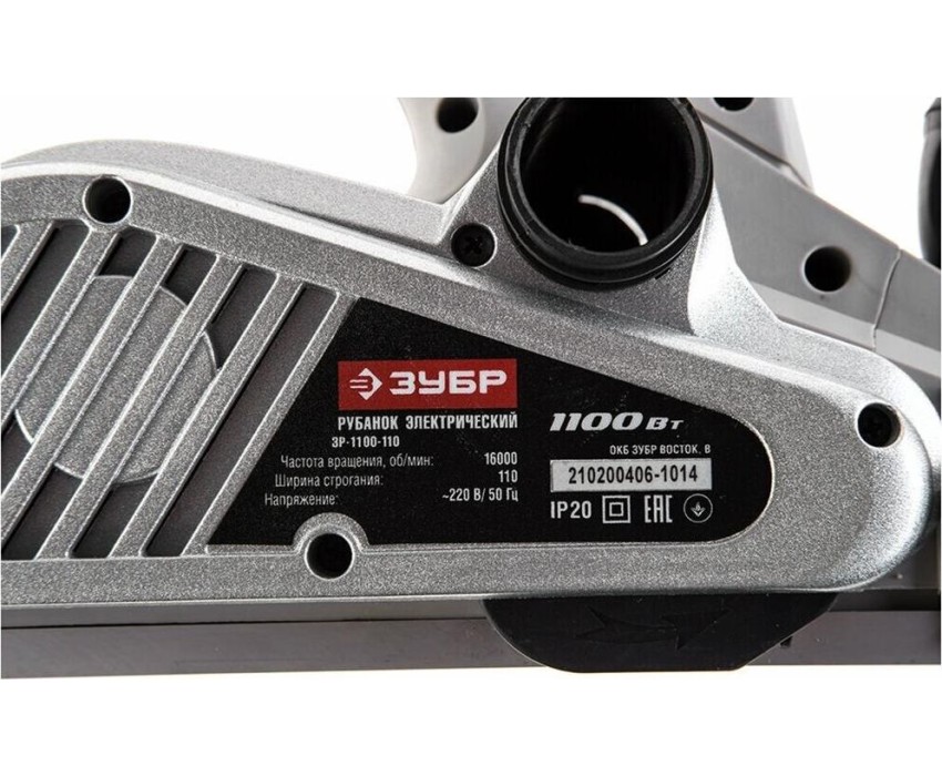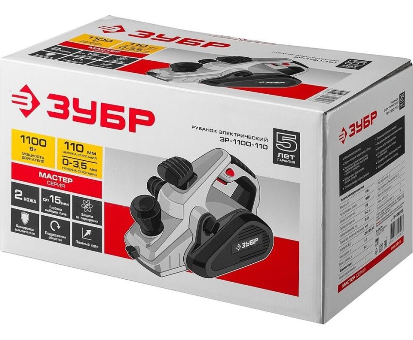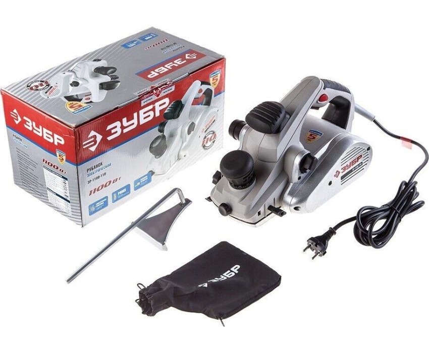 Электрический рубанок ЗУБР ЗР-1100-110 применяется для обработки деревянных заготовок. 3V-образных паза делают снятие фасок более простым. Точная регулировка глубины строгания способствует более аккуратной работе. Выброс опилок можно настраивать на левую или правую сторону. Технические характеристики Зубр ЗР-1100-110 Вес, кг 5. Мощность, Вт 1100. Ширина обработки, мм 110. Наличие плавного пуска. Регулировка глубины строгания. Выборка четверти.Поддержание постоянных оборотов под нагрузкой.Глубина строгания, мм 0-4 Мах глубина выборки четверти, мм 15. Число оборотов, об/мин 16000.