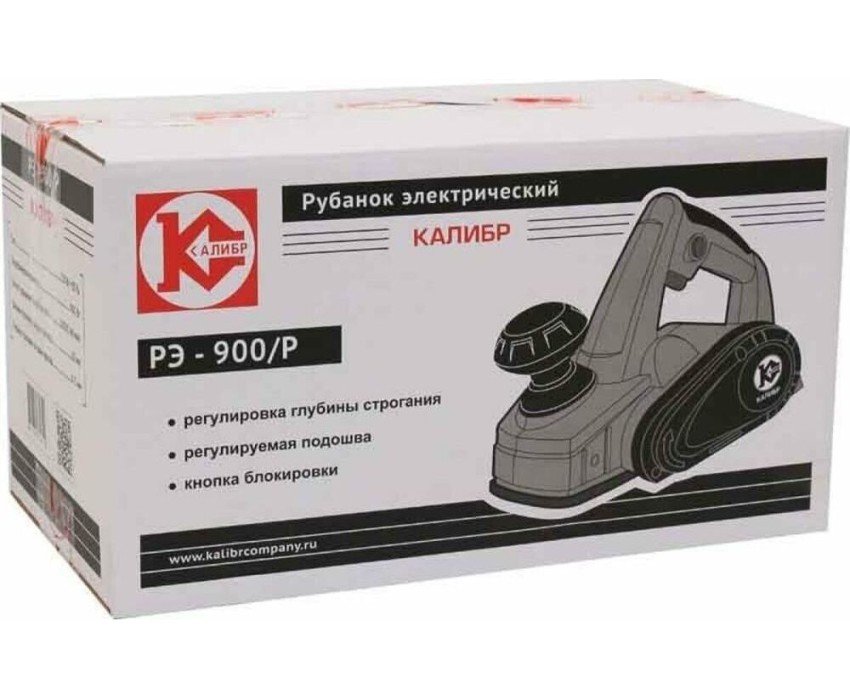 Ручной электрический рубанок Калибр РЭ-900/Р предназначен для строгания пиломатериалов из древесины различных пород.V – образная канавка на рабочей поверхности передней подошвы,позволяют производить снятие фасок при изготовлении элементов деревянных конструкций.Регулировка глубины строгания; Блокировка клавиши выключателя.Характеристики,Потребляемая мощность 900 Вт,Число оборотов на холостом ходу 16500 об/мин,Ширина строгания за один проход 82 мм,Глубина строгания 0-3 мм,Размеры ножа (ДхШхТ) 82х5.7х1.2 мм,Электродвигатель однофазный коллекторный,Тип передачи ремённая,Класс безопасности (ГОСТ Р МЭК 60745-1-2011) II,Длина шнура питания,не менее 2 м,Номинальное напряжение/Частота 220 В/50 Гц,Габариты в упаковке (ДхШхВ) 305х170х170 мм,Вес (брутто/нетто) 3.0/2.7 кг.