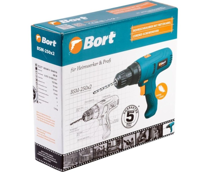 Дрель-шуруповерт BORT BSM-250х2 Дрель-шуруповерт электрический
