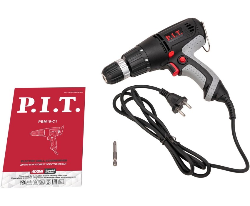 Дрель-шуруповерт P.I.T. Дрель-шуруповерт электрич. PBM10-C1 МАСТЕР (400Вт, 22Нм, БЗП 10мм, 0-800об/мин, регулир. 8+1)
