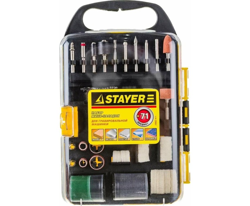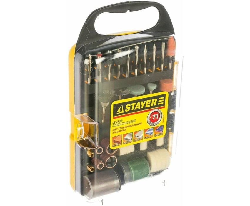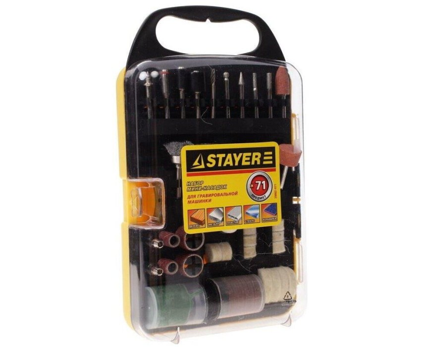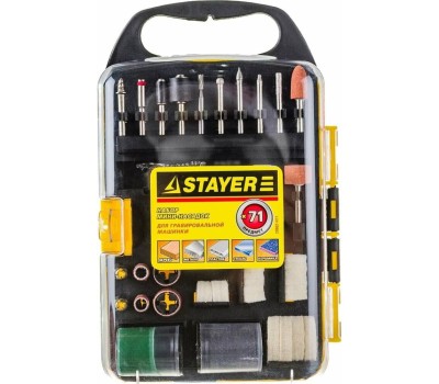 STAYER 71 предм., Набор мини-насадок для гравировальных машин (арт. 29902-H71). -Максиальная частота вращения, об/мин: 33000.