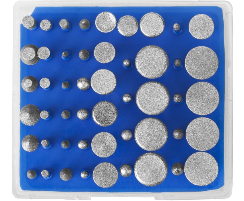 Алмазные мини-насадки ЗУБР - профессиональный инструмент для обработки и шлифовки различных материалов. Преимущества Равномерное нанесение алмазного порошка на поверхность рабочей части обеспечивает качественную и аккуратную обработку материала без сколов и заусенцев. Нанесение из высококачественных синтетических алмазов. Ассортимент мини-насадок различных форм позволяет обрабатывать самые сложные участки деталей разной конфигурации. Использование Применяется с гравировальной бор-машинкой для проведения высокоточного шлифования цветных металлов, стекла, керамики, пластика и прочих материалов.