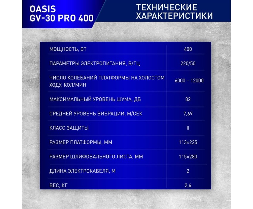 Шлифовальная машина OASIS GV-30 PRO 400 400Вт, 225х113мм, плоскошлифовальная