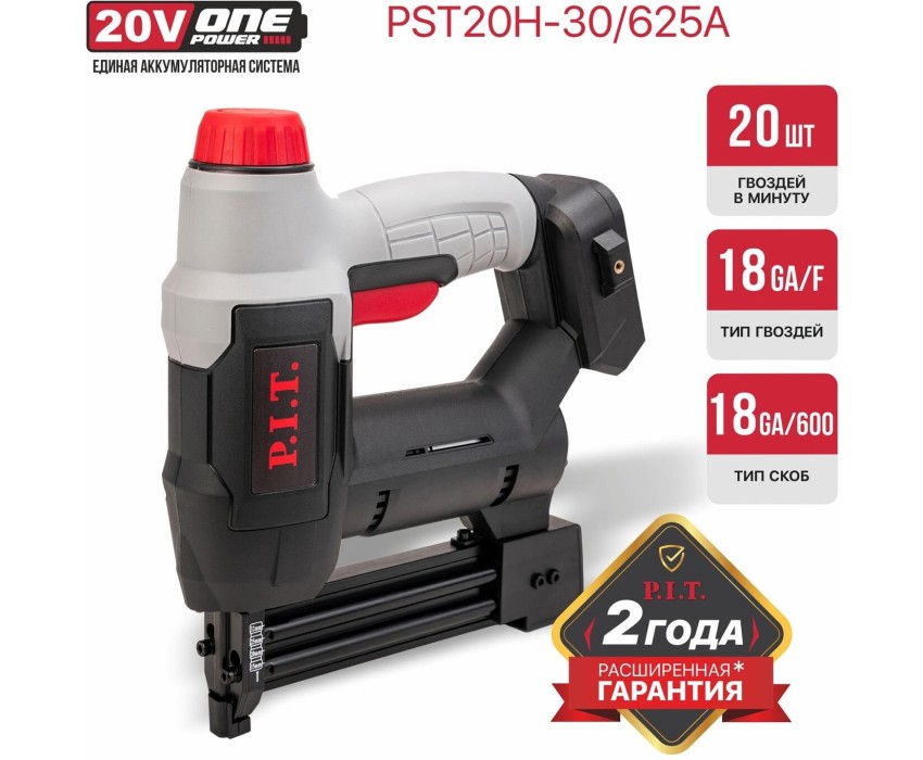Степлер аккумуляторный P.I.T. Степлер аккум. PST20H-30/625A SOLO (20В, скобы/гвозди, 20шт/мин, магаз 100 шт, LED-подсветка)