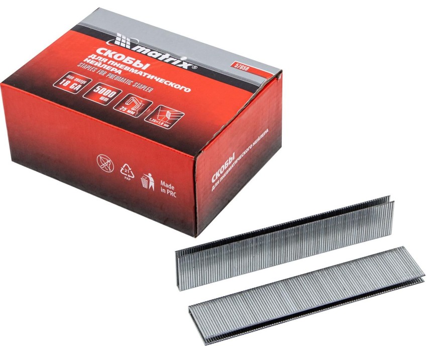 MATRIX Скобы для пневматического степлера 18GA, 1.25 х 1 мм длина 25 мм ширина 5,7 мм, 5000 шт 57659
