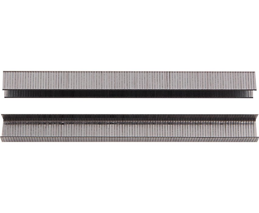 Скобы Matrix 57656 шириной 11,2 мм, 5000 шт. в упаковке, можно использовать с мебельными и строительными пневматическими степлерами, работающими с крепежом размером 10 х 1,2 х 0,6 мм. Они применяются для крепления плинтусов, тканей, пленки и других материалов к деревянным поверхностям. Преимущества Прочность и коррозионная стойкость — скобы изготовлены из стали твердостью 310 HV и имеют предел прочности при растяжении 1100 Н/мм², а никелевое покрытие защищает их от воздействия влаги. Эффективная работа — скобы с заостренными концами легко пробивают даже твердые материалы. Продуманная комплектация — крепежи, склеенные в блоки, не рассыпаются, а упаковки из 5000 шт. хватит надолго.