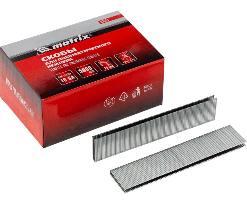 MATRIX Скобы для пневматического степлера 18GA, 1.25х1 мм длина 28 мм ширина 5,7 мм, 5000 шт 57661