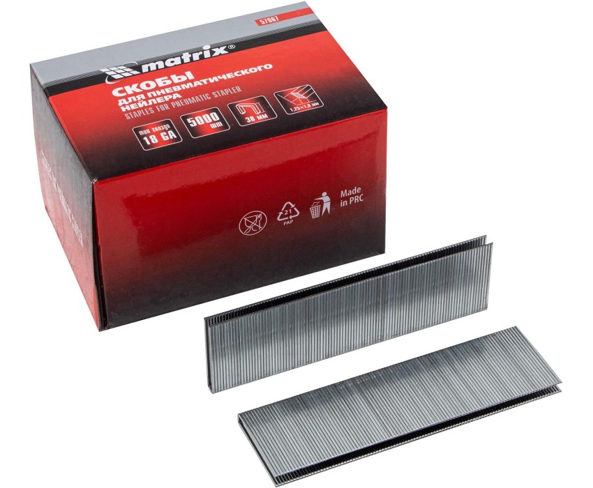 MATRIX Скобы для пневматического степлера 18GA, 1.25 х 1 мм, длина 38 мм ширина 5,7 мм, 5000 шт 57667