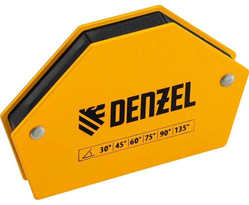 Фиксатор магнитный Denzel 97552 выдерживает усилие 25 LB (11 кг), позволяет соединять металлические детали разного размера под углом 30°, 45°, 60°, 75°, 90° и 135° и используется при проведении сварочных работ.
