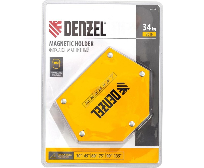 Фиксатор магнитный DENZEL Фиксатор магнитный для сварочных работ усилие 75 LB, 30х45х60х75х90х135 град. Denzel 97556