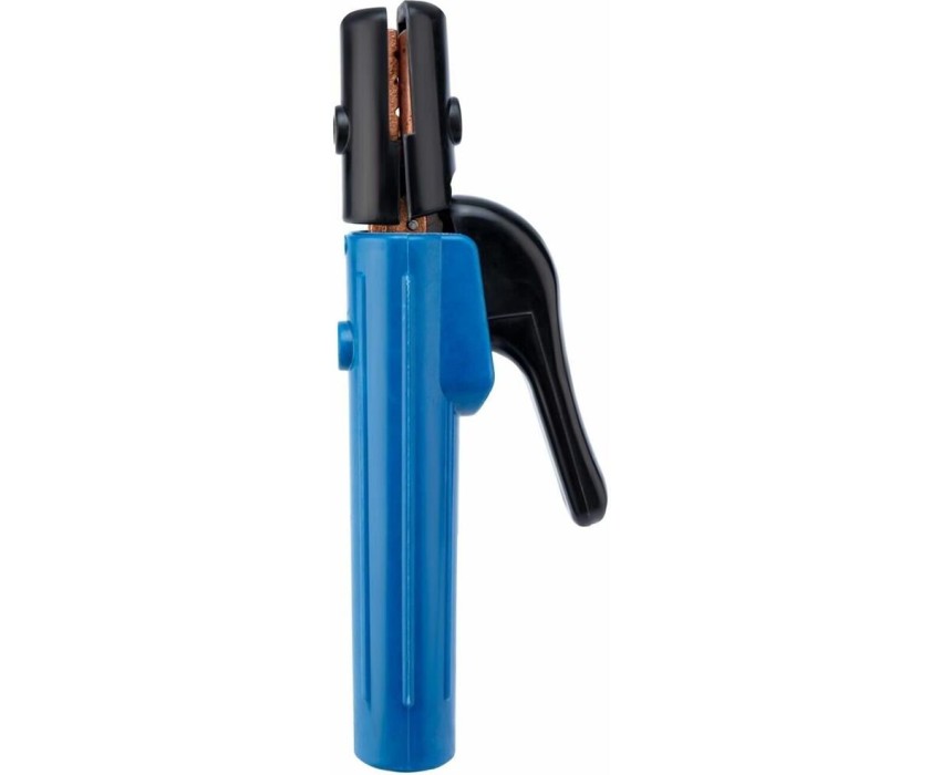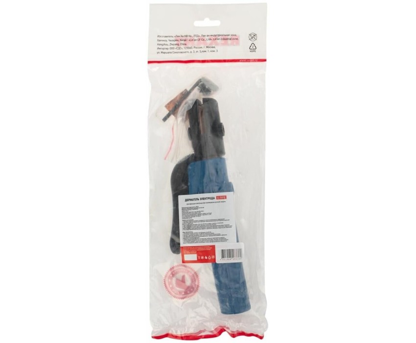 Держатель электрода REXANT 300А E-type предназначен для фиксации электрода при проведении ручной сварки. Прочный и универсальный в применении инструмент гарантирует жесткую фиксацию широкого диапазона используемых габаритов электродов и сварочного кабеля. Производителем предусмотрена надежная фиксация электрода в четырех положениях благодаря рельефу зажимной пластины. Удобная ручка надежно изолирована пластиковым материалом, который выдерживает высокие механические и технические нагрузки. Габаритные размеры: 230x35x35 мм Диаметр применяемых электродов: 2,0-5,0 мм Масса: 0.26 кг Наибольший сварочный ток при ПВ=35%: 300 А Номинальный сварочный ток: 300 А Продолжительность цикла сварки: 5 мин Сечение жилы подсоединяемого сварочного кабеля: до 50,0 мм Угол закрепления электрода без подгиба, с подгибом: 0…270° Усилие прижатия электрода: 12.5-25 кгс Напряжение: до 50 В