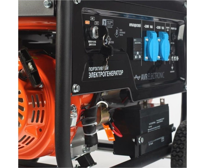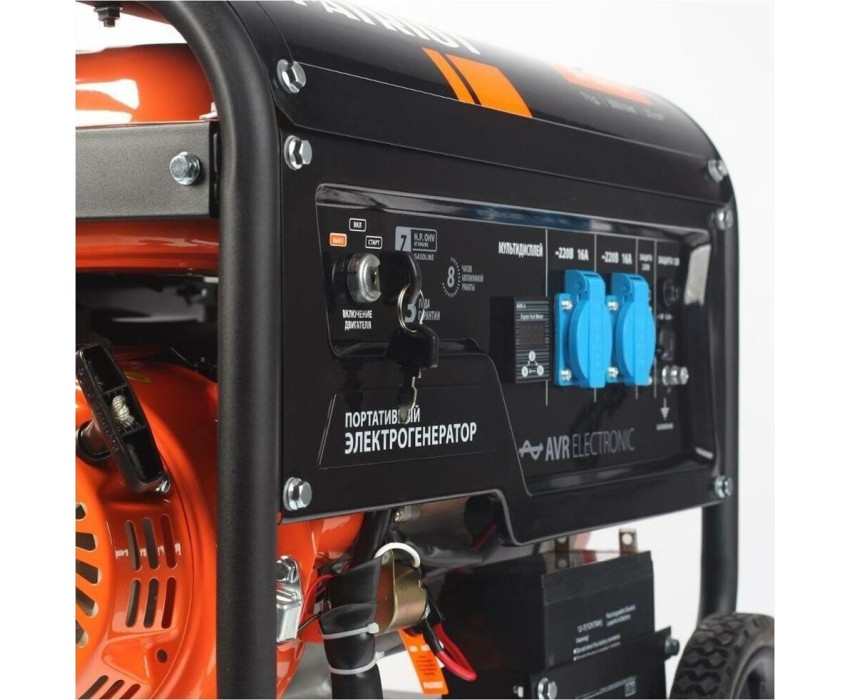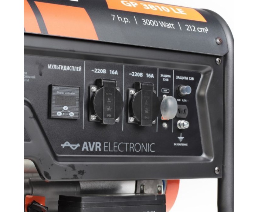 Макс. мощность, кВт 3,0. Номин. мощность, кВт 2.8. Входное напряжение, В 220. Мощность двигателя, л.с. 7. Объем двигателя, см3- 210. Объем топливного бака, л 15 Объем масляного картера, л 0.6. Тип двигателя 4-х тактный бензиновый. Тип топлива бензин АИ-92. Система старта ручной/электро + АКБ. Выход на 12B Да. Розетки 2 евро 16А. Комплект для транспортировки Да. Вес эксплуатационный, кг 50.1.