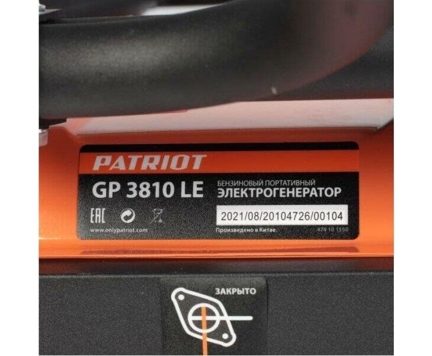 Генератор PATRIOT 474101550 GP 3810LE Генератор бензиновый