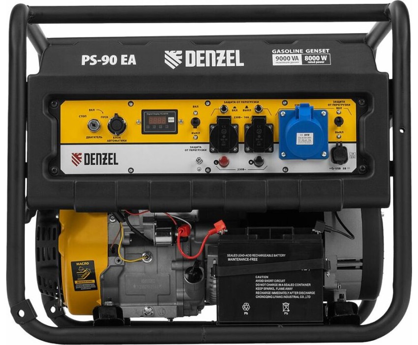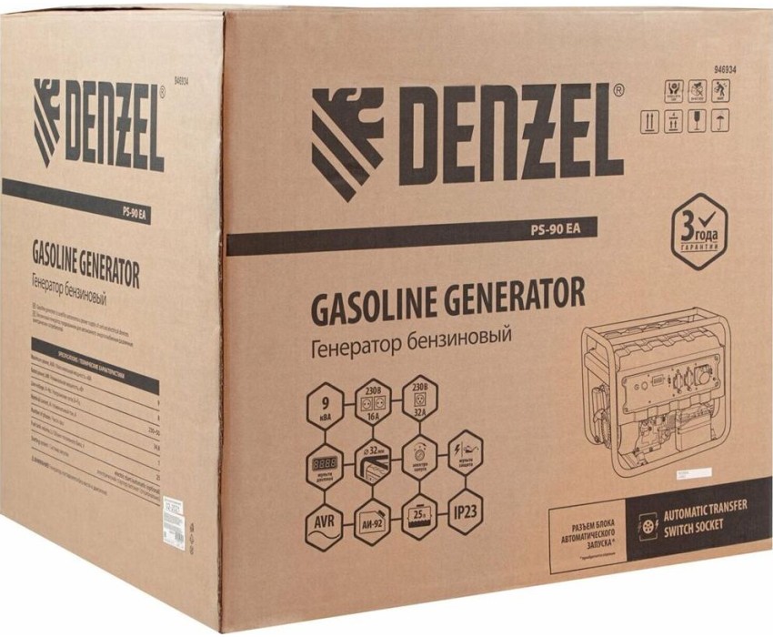 Генераторы бензиновые DENZEL Генератор бензиновый PS 90 EA, 9,0 кВт, 230В, 25л, коннектор автоматики, электростартер 946934