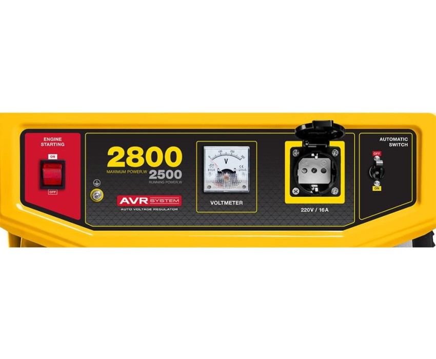 Max мощность, кВт: 2.8. Вид топлива: бензин Аи92. Выход 12V: нет. Датчик масла: есть. Евро разъём Schuko 230V/16А: нет. Индикатор уровня топлива: есть. Контроль напряжения: AVR. Тип двигателя: 4-х тактный. Тип электростанции: мобильные. Уровень шума, дБ: 69. Эл. выходы 380/220/12, шт: -/1/-. Мощность номинальная при 220 В, кВт: 2.5. Напряжение, В: 220. Стартер: ручной. Альтернатор: синхронный. Автозапуск (АВР): нет. Емкость топливного бака, л: 15. Вес, кг: 46.