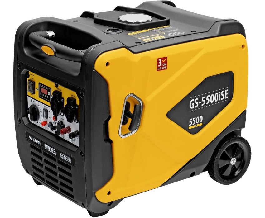 Генератор инверторный Denzel GS-5500iSE 94712 максимальной мощностью 5,5 кВт, в закрытом корпусе, с электростартером, поддерживает напряжение в сети 230 В и используется для обеспечения работоспособности бытовой техники, электроинструмента и осветительных приборов в условиях отсутствия бытовой сети. Для подключения потребителей предусмотрено две розетки 230 В / 16 А. Выход USB 5 В позволяет подключать мобильное устройство, например, смартфон или планшет, а клеммы постоянного тока 12 В служат для зарядки автомобильных аккумуляторов. Предусмотрена возможность снятия полной мощности одним потребителем: на панели управления имеются силовые клеммы. Генератор незаменим в загородном доме.