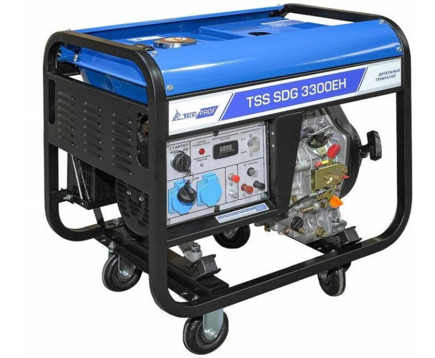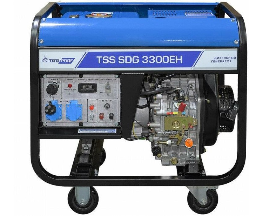 Генератор ТСС Дизельный генератор SDG 3300EH, 220/12 В, 3.3кВт, на колёсах с АКБ [100044]