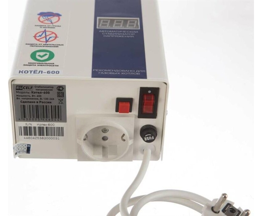 Прибор специализированной серии для защиты котельного оборудования. Тип стабилизации: Релейный. Диапазон стабилизации: 130-265 В. Точность стабилизации: ±8%. Мощность: 600 Вт. Габаритные размеры: 135x203x93 мм. Вес: 2,4 кг.