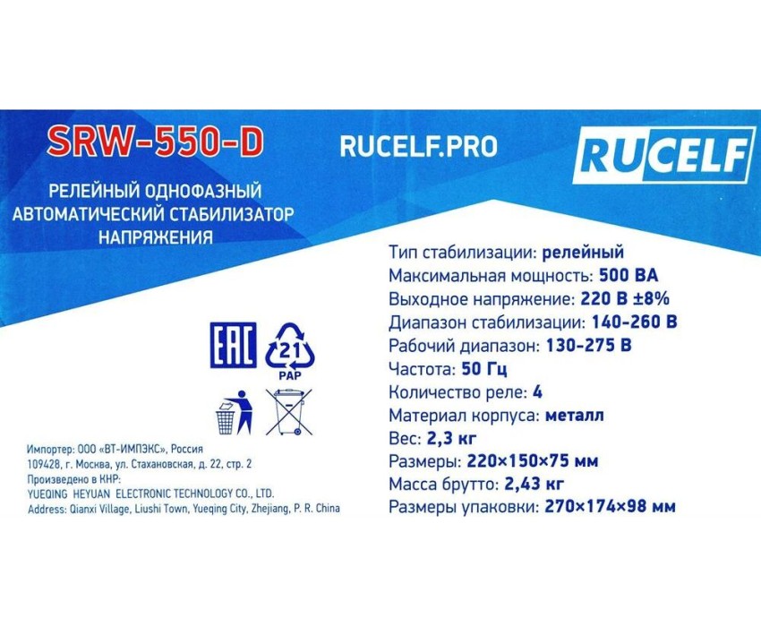 Стабилизатор напряжения релейный RUCELF SRW-550-D