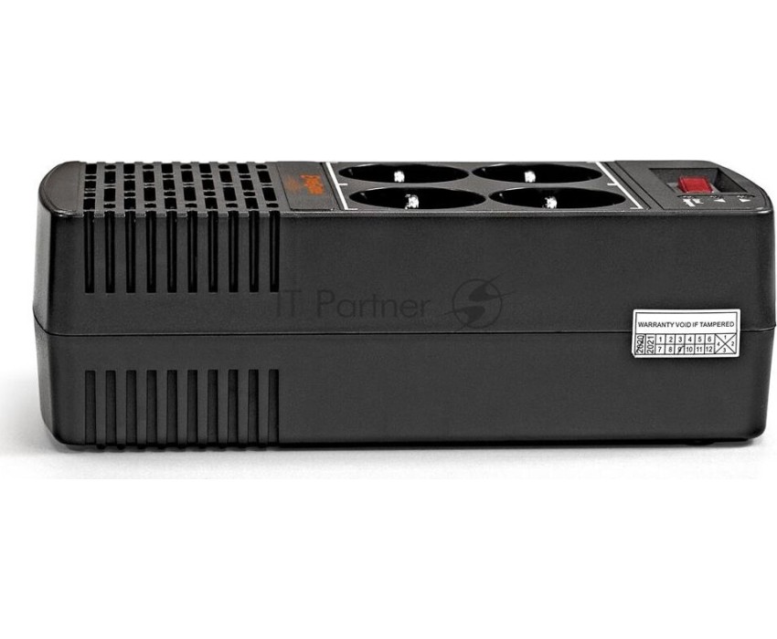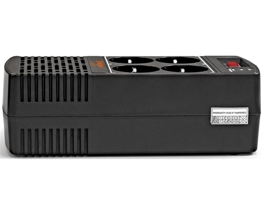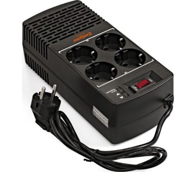 Стабилизатор релейный, предназначен для коррекции напряжения в сетях электроснабжения, выходная мощность - полная 1000 ВА,активная - 500 ВТ ; количество выходных розеток - 4 EURO , входное напряжение,В: 150 - 280, выходное напряжение, В: 220 , защита от повышенного/пониженного напряжения, высоковольтных импульсов, короткого замыкания, перегрузки и перегрева , индикация входных/ выходных параметров: LED .