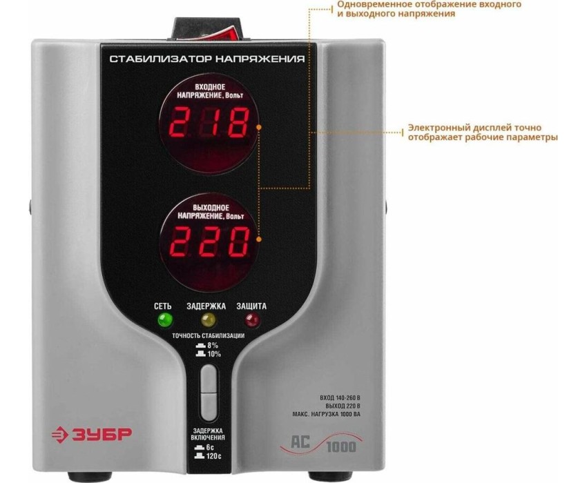 Стабилизатор ЗУБР 59375-1 1000ВА