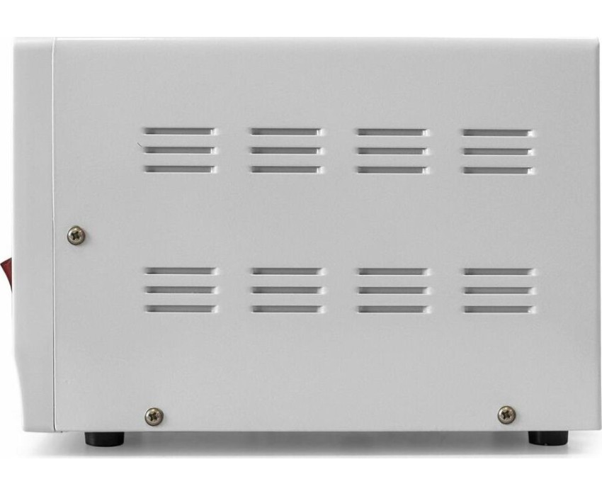 Однофазный стабилизатор обеспечивает для подключенного оборудования выходное напряжение 220В ± 8% Особенности: Помимо регулировки напряжения стабилизатор значительно снижает уровень импульсных и высокочастотных помех, попадающих в нагрузку. Общие параметры Выходная мощность полная, ВА: 2000 Форм-фактор: Напольный Тип стабилизатора: Релейный стабилизатор напряжения Индикация режимов работы Индикация входных/выходных параметров: LED Входное напряжение ниже допустимого диапазона: Горит "L" + красный светодиод Входное напряжение выше допустимого диапазона: Горит "H" + красный светодиод Стабилизатор находится в режиме работы от сети: Горит зеленый светодиод Напряжение в сети в пределах допустимого диапазона: Горит зеленый светодиод Действует режим задержки: Горит желтый светодиод Перегрев стабилизатора: Горит "C" + красный светодиод Входные и выходные параметры Входное напряжение, В: 140-260 Выходное напряжение, В: 220 Время выхода в режим стабильного напряжения, мс: 5-7 КПД: 98% Подключение нагрузки: 2 EURO Распо