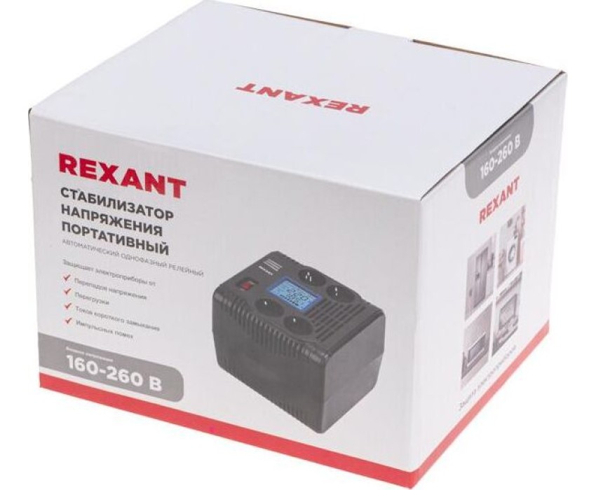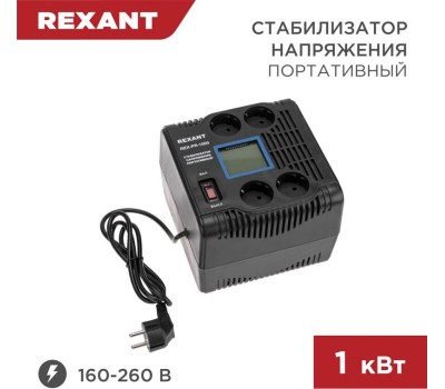 Стабилизатор напряжения однофазный портативный REXANT (11-5029) REX-PR-1000 черный
