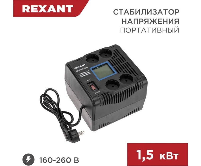 Стабилизатор напряжения однофазный портативный REXANT (11-5031) REX-PR-1500 черный