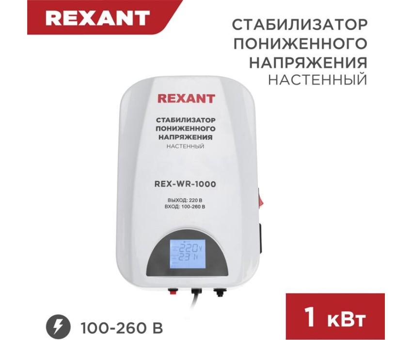 Стабилизатор однофазный пониженного напряжения REXANT (11-5042) REX-WR-1000 белый