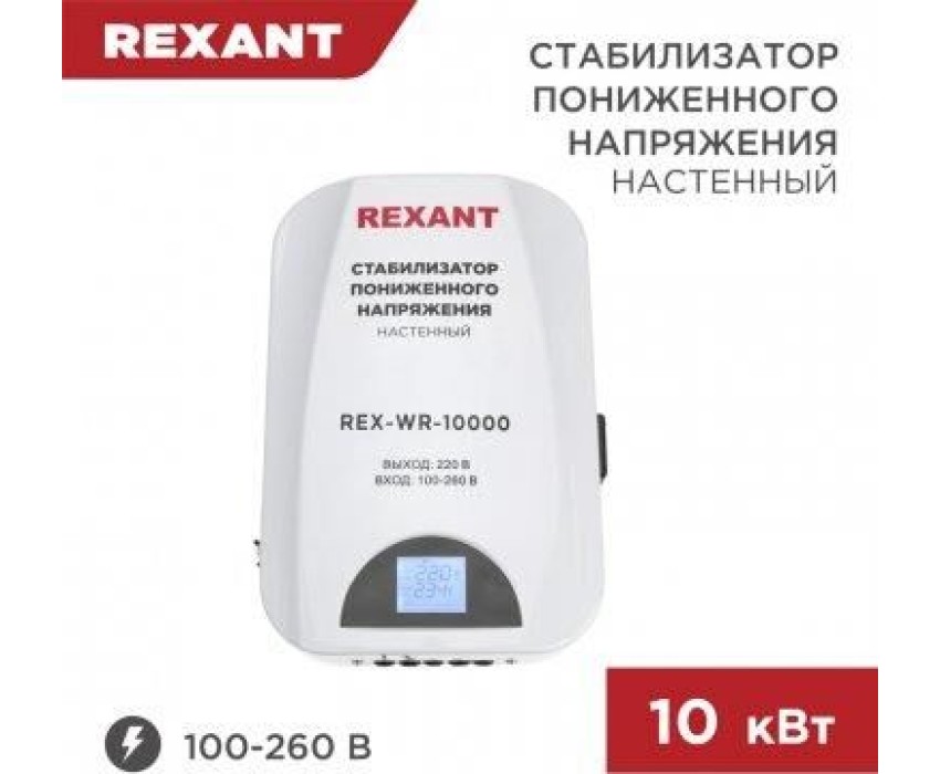 Стабилизатор однофазный пониженного напряжения REXANT (11-5048) REX-WR-10000 белый