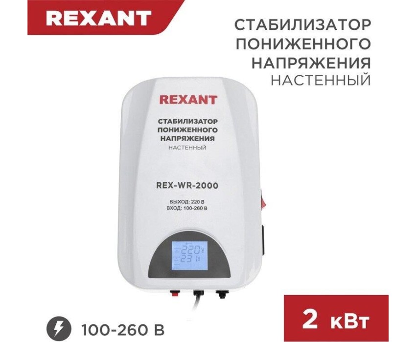 Стабилизатор однофазный пониженного напряжения REXANT (11-5044) REX-WR-2000 белый