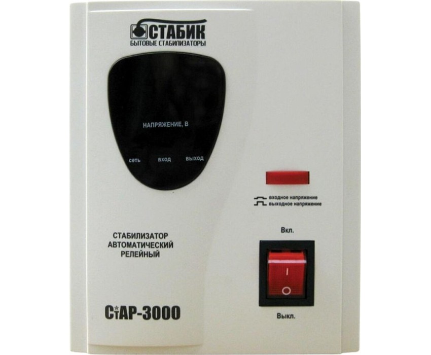 Стабилизатор однофазный, Максимальное входное напряжение 260 В Минимальное входное напряжение 140 В Страна производства Россия Количество гнезд/розеток 2 Тип стабилизатора электронный (релейный) Полная мощность (ВА) 3000 ВА, Защита от перегрузок; Аварийная остановка.