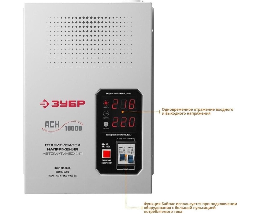 Автоматический стабилизатор напряжения ЗУБР 59387-10 10000ВА, навесной