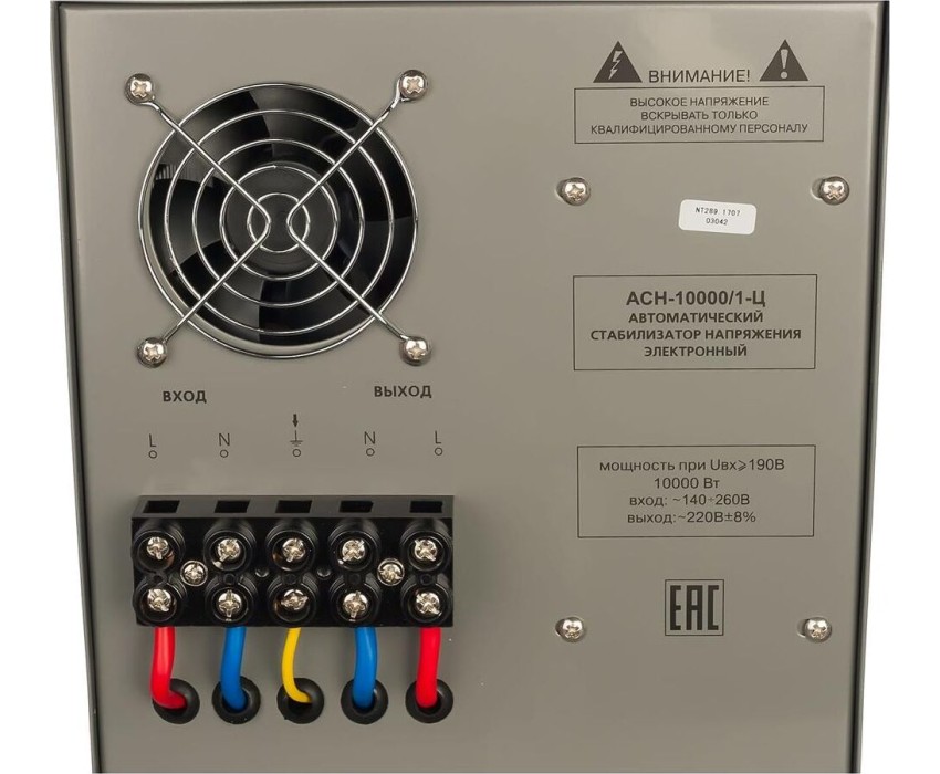 Номинальная мощность 10 000Вт, Тип двигателя Релейный, производство Китай, Серия АСН, Тип напряжения Однофазное (220 В), Размещение Напольное, Время отклика 7мс, Скорость стабилизации 35В/с, Охлаждение Естественное, Класс защиты IP20, Влажность воздуха 80%, КПД 97%, Точность стабилизации 8%, Выходное напряжение 202-238В, Рабочая температура 5-40°C, Частота 50Гц, Выходные розетки-1, Защита от короткого замыкания, от перегрева, от повышенного напряжения, от помех