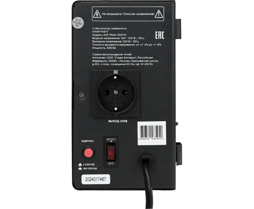 SMARTWATT Стабилизатор напряжения AVR Triac 500TW черный [4512020380004]
