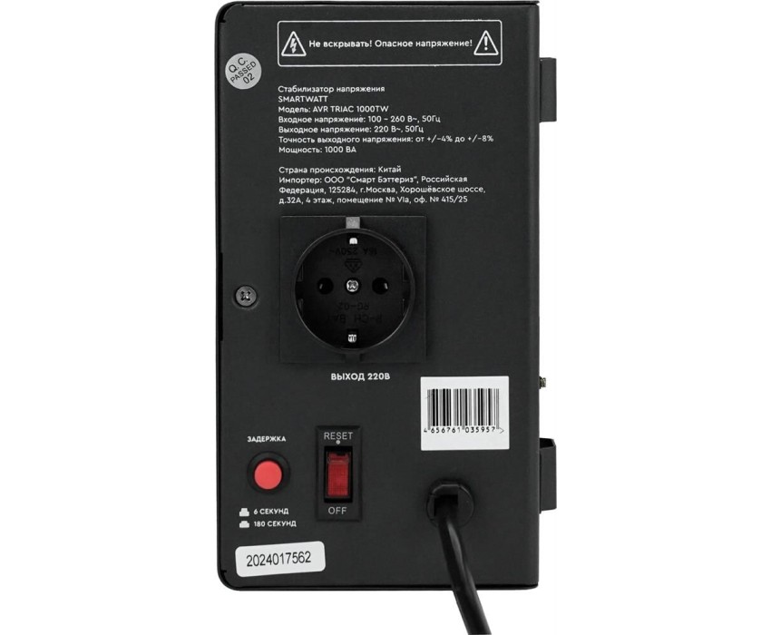 SMARTWATT Стабилизатор напряжения AVR Triac 1000TW черный [4512020380001]