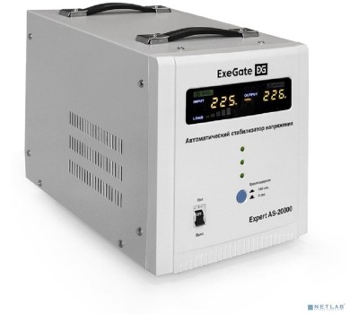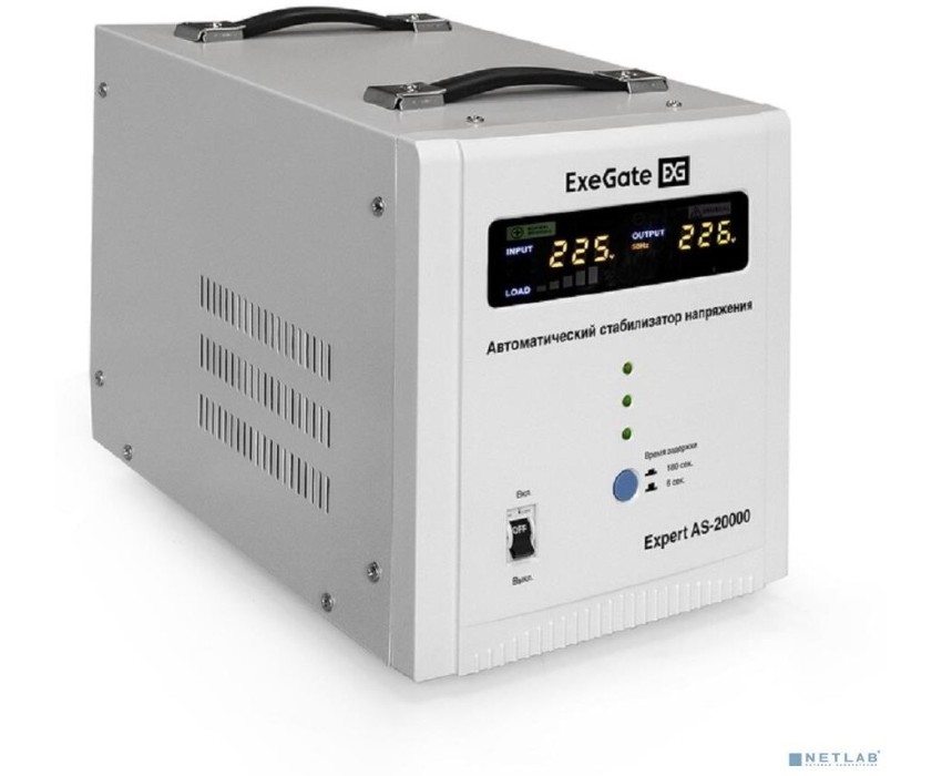 [Сетевой фильтр] Exegate EX291761RUS Стабилизатор напряжения ExeGate Expert AS-20000 (20000ВА, вход 140-260В, цветной дисплей, выход 220В±8%, КПД 98%, 5 уровней защиты, задержка, усиленный метал. корпус, клем.колодка,