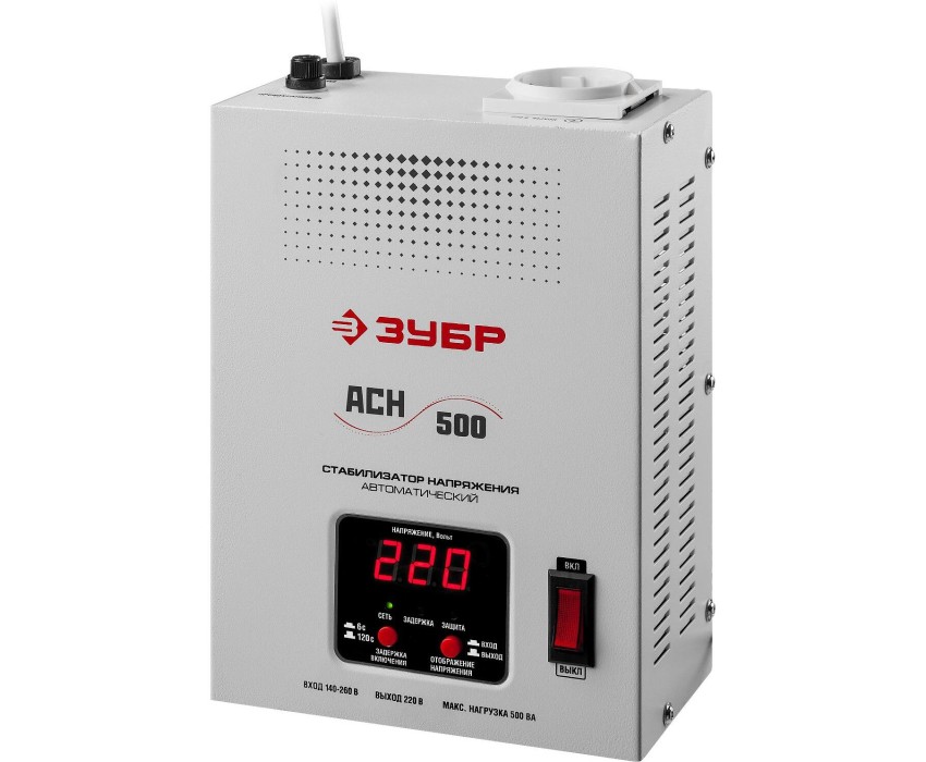 ЗУБР 500ВА, 0.5 кВт, автоматический стабилизатор напряжения, Профессионал (59385-0.5)