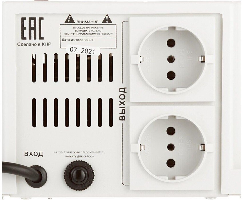 мин. выходное напряжение (фазное): 202 В; макс. входное напряжение (рабочее): 260 В; скорость стабилизации: 35 В/с; макс. входная частота: 50 Гц; мин. входная частота: 50 Гц; количество выходных розеток (общее): 2 шт.; время отклика: 15 мс