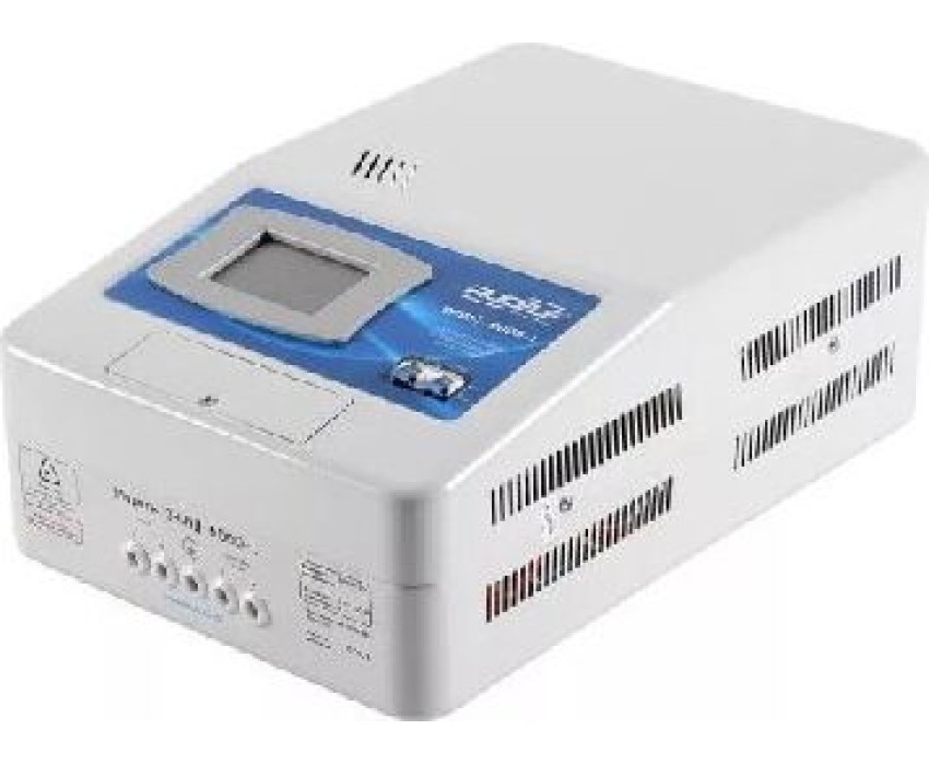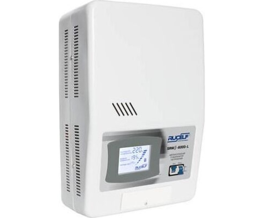 Тип стабилизации: Релейный Диапазон стабилизации: 110-270 В Рабочий диапазон: 95-280 В Точность стабилизации: ±8% Мощность: 6000 ВА Габаритные размеры (ДхШхВ): 445х330х220 мм Вес: 12,7 кг LCDдисплей,настенный, микропроцессорное управление, рабочий диапазон 100-300В,точность 220+-3,5%, Тип ступенчатый, релейный, КПД 98%.